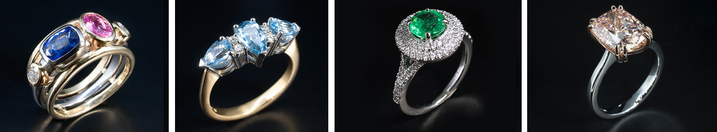 Bespoke diamond and coloured stone engagement rings by Blair and Sheridan