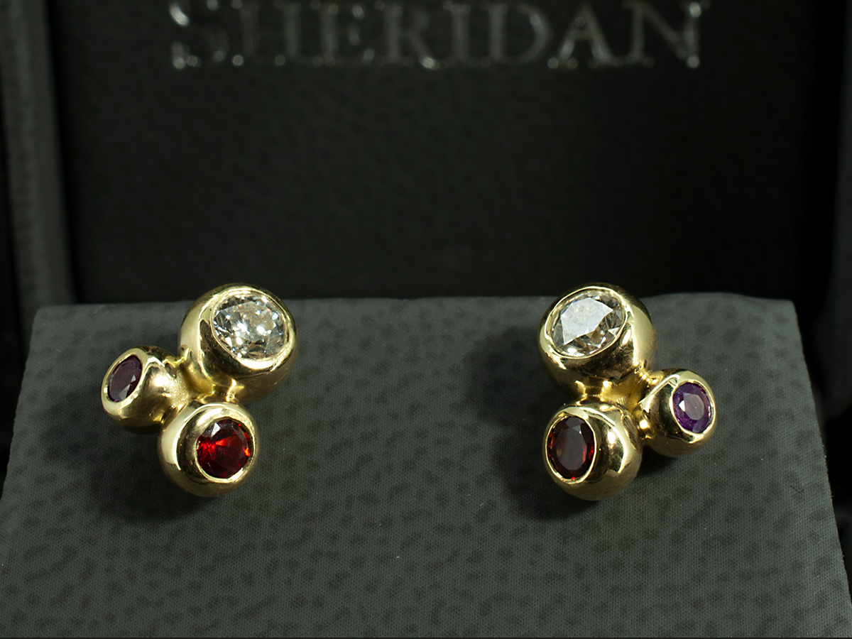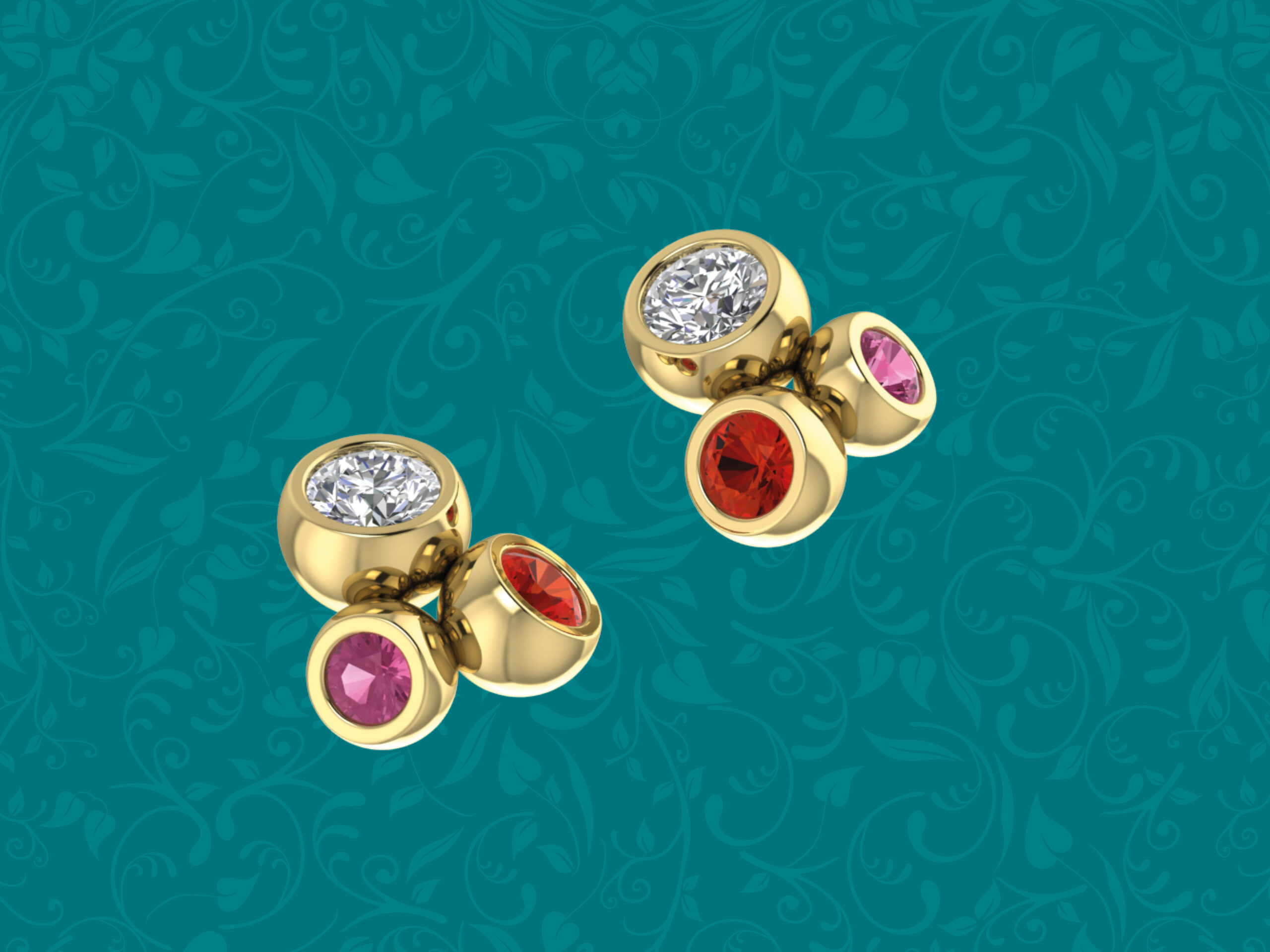 Introducing the Kelvin Collection Diamond and Sapphire Trilogy Earrings — these yellow gold earrings embody modern sophistication and timeless balance. Each earring showcases a round brilliant cut diamond, blood orange round sapphire and pink sapphire. Handcrafted in 18kt yellow gold, their match of colour and sparkle offer an understated contemporary luxury.